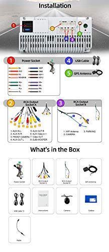 Inhoud van de verpakking: 1 x stopcontact / 1 x RCA A-uitgangsconnector / 1 x RCA B-uitgangsconnector / 1 x USB-kabel / 1 x GPS-antenne / 1 x camera aan de achterzijde / 1 x handleiding / 1 x Canbus/1 x radio-antenne